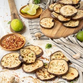Learn how to make easy oven baked eggplant as a healthy side dish. This oven fried eggplant without breadcrumbs is flavored with chili and lime seasoning for a delicious way to enjoy this nutritious fruit.