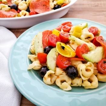 - For vegetarian summer tortellini salad, omit the pepperoni.