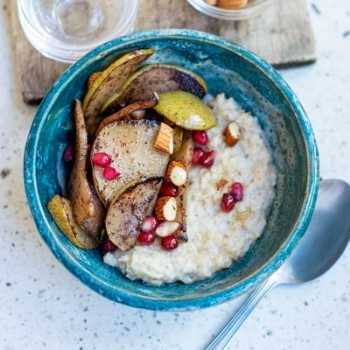 While not everyone likes oatmeal, it could just be you’re eating it wrong. Throwing in warm caramelized pears, cinnamon, pomegranate and almonds, gives this pear oatmeal recipe a tasty twist on traditional oatmeal that tastes just like pear pie! So even if your spouse or kids loathe eating the stuff, they’re sure to change their minds once they try this wonderful alternative.
